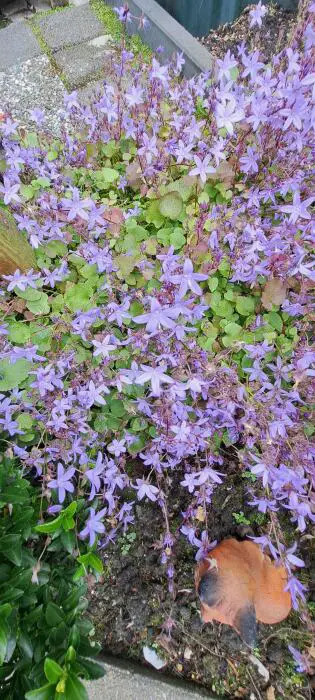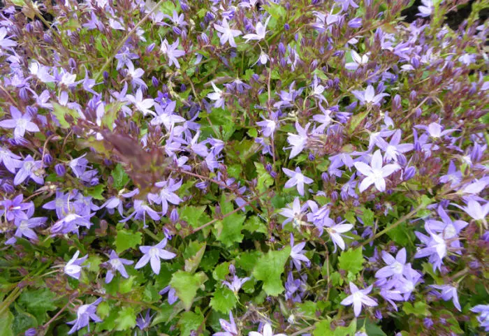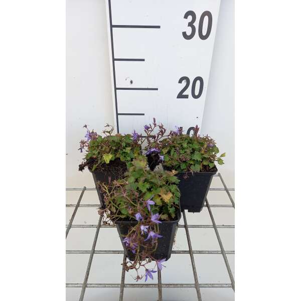 Een lage Campanula met lange stengels, ideaal om over de randen van potten en bakken te hangen of muurtjes. Geplant onderaan een muur zal hij al snel ietsjes omhoog klimmen.