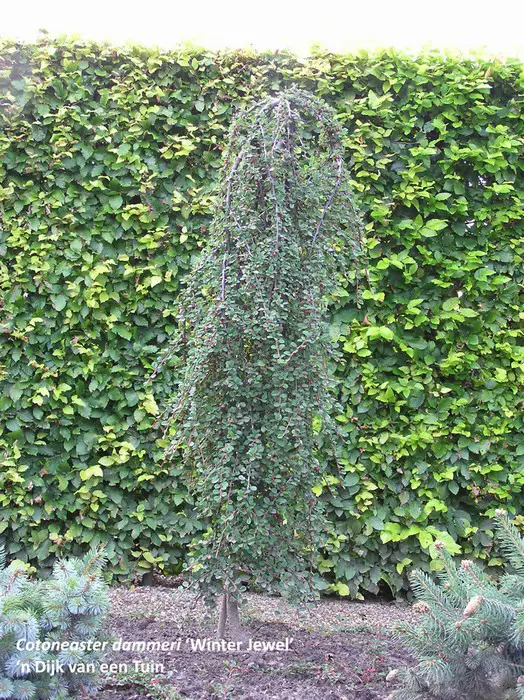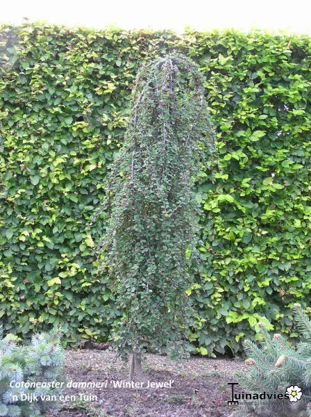Cotoneaster dammeri 'Winter Jewel' is een platgroeiend laag struikje.