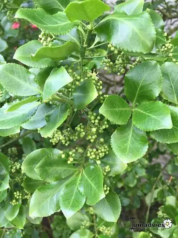 De bloei is onopvallend maar het blad is bij deze heesters des te meer. Ze kunnen groen of bontgekleurd zijn.