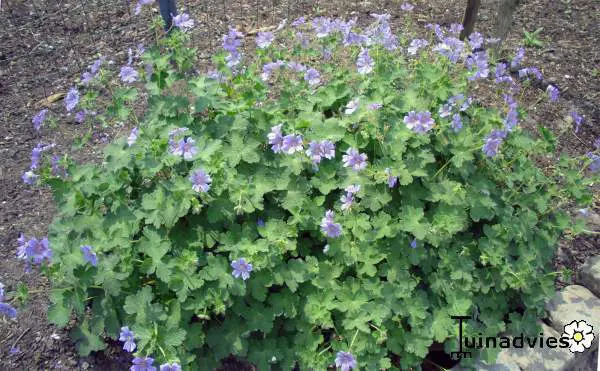 Geranium renardii 'Stephanie' is een geranium dat zelf zonder bloem er best mag wezen, heeft een mooi ordelijk groenblijvend, zeer donzige grijsblauw blad.