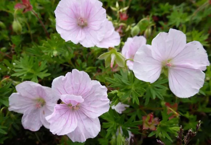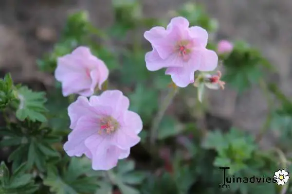 Geranium sanguineum 'Apfelblüte' is een groeikrachtige bodembedekker met een brede groeiwijze en zeer fijn verdeeld blad dat in het najaar naar rood verkleurt.