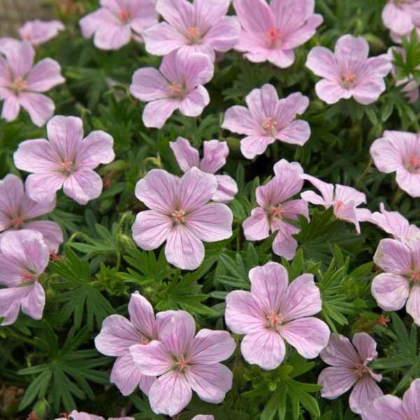 Geranium sanguineum 'Pink Pouffe' is een groeikrachtige bodembedekker met een brede groeiwijze en zeer fijn verdeeld blad dat in het najaar naar rood verkleurt.