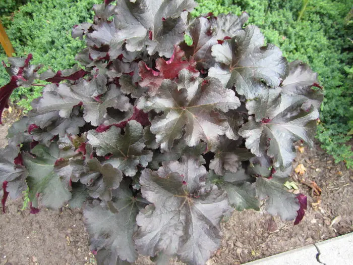 Heuchera 'Black Beauty' heeft zeer donker purper blad.
