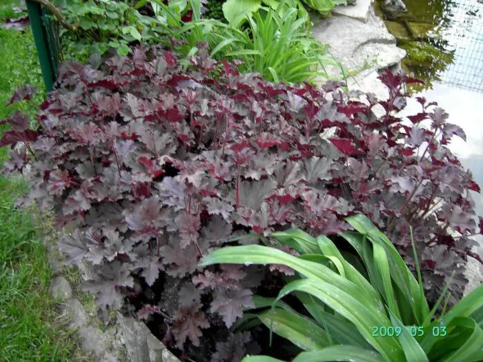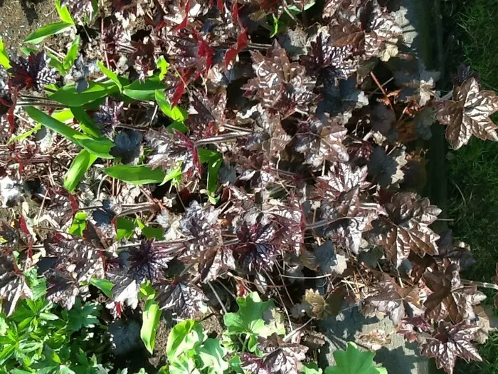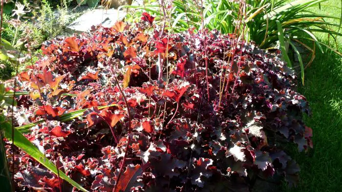 Heuchera's wortelen vrij oppervlakkig en dienen dus iets dieper dan de kroon geplant te worden.