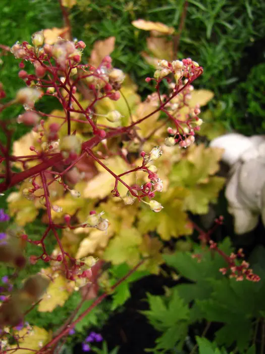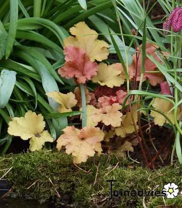 Heuchera's wortelen vrij oppervlakkig en dienen dus iets dieper dan de kroon geplant te worden.