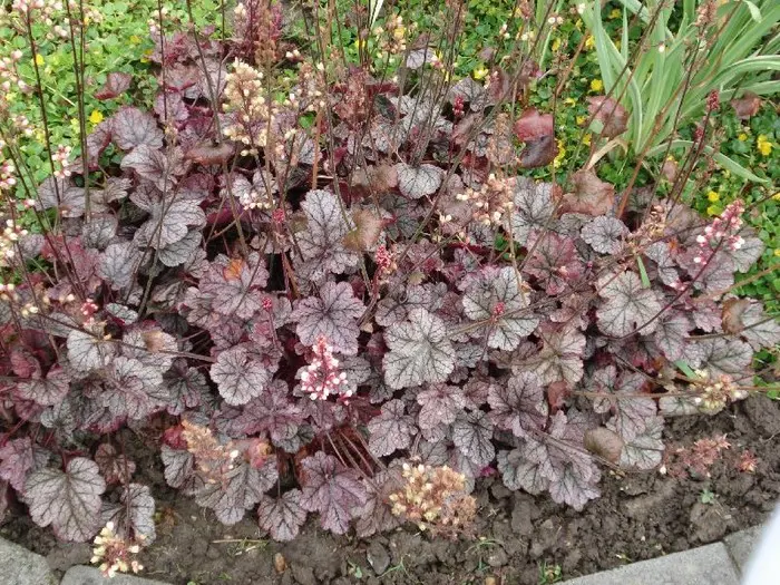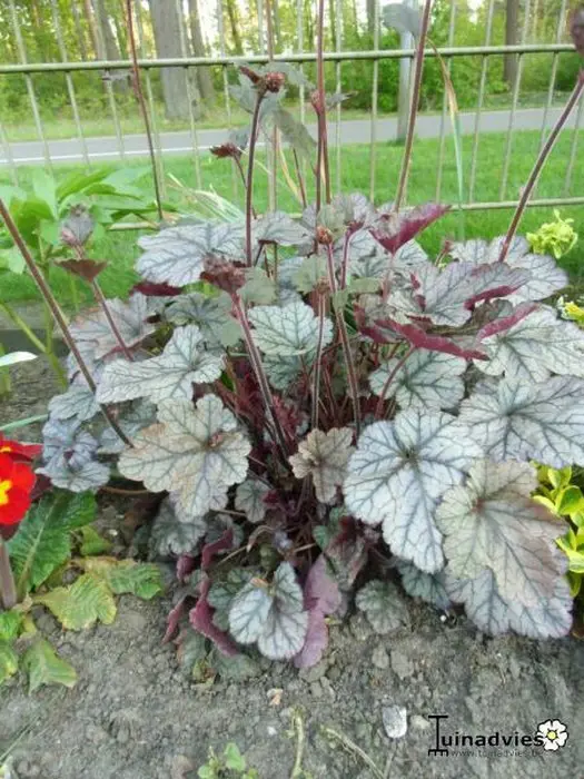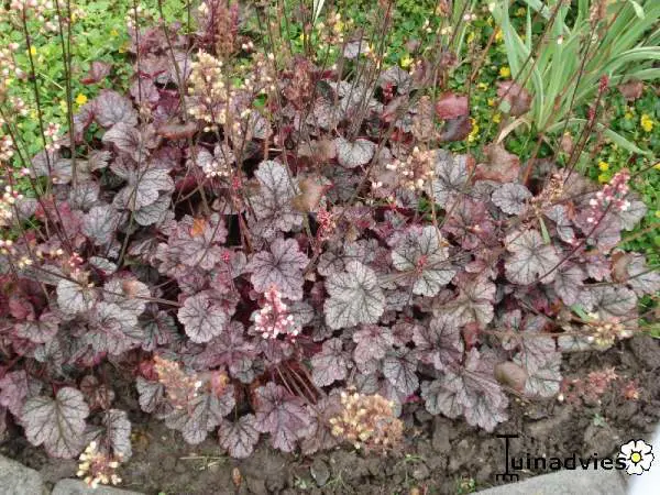 Heuchera's wortelen vrij oppervlakkig en dienen dus iets dieper dan de kroon geplant te worden.
