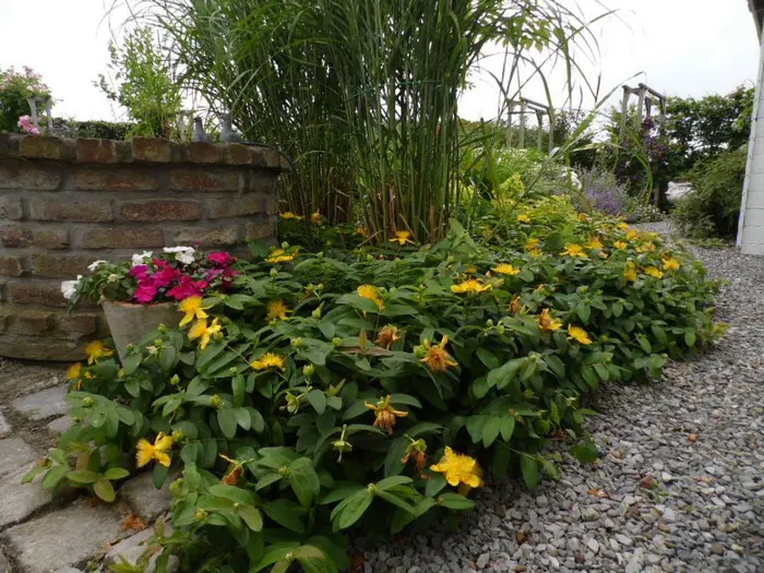 Hypericum calycinum is een uitstekende bodembedekker voor harde, rotsachtige en droge gebieden of onder bomen waar niets groeit.