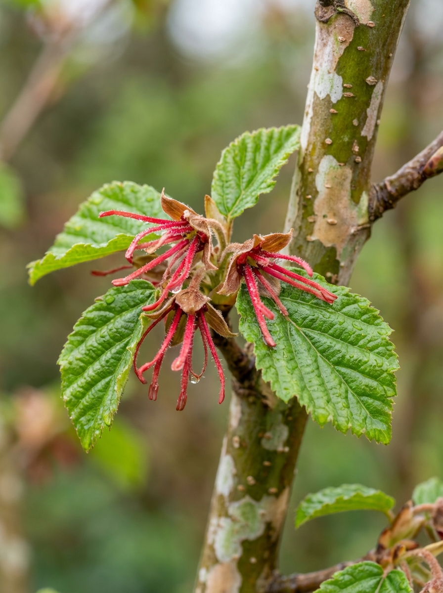 Parrotia persica 'Bella' is een meerstammige boom met een opgaande groeiwijze. Het jong schot is rood maar deze cultivar heeft ook prachtige herfstkleuren die al vroeg begint in de zomer met rode tot paarsrode verkleuring in het blad.