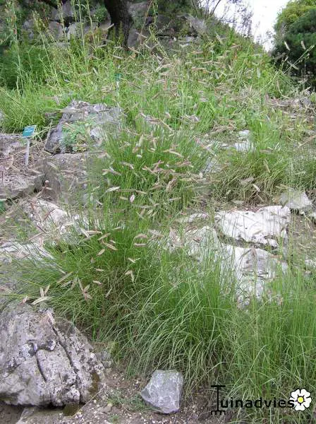 Bloeit met sierlijke halmen waarvan de donkere aren op muskieten lijken.