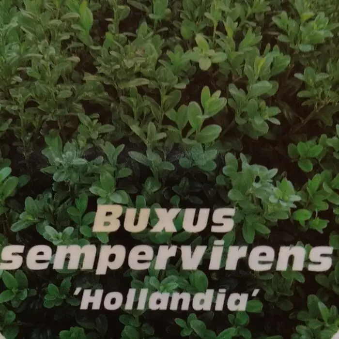 Buxus sempervirens 'Hollandia' is een opgaand, bossig groeiende struik met groot donkergroen blad.