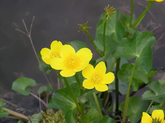 Dotterbloemen zijn ook mooi aan de rand van de vijver in de moeraszone.