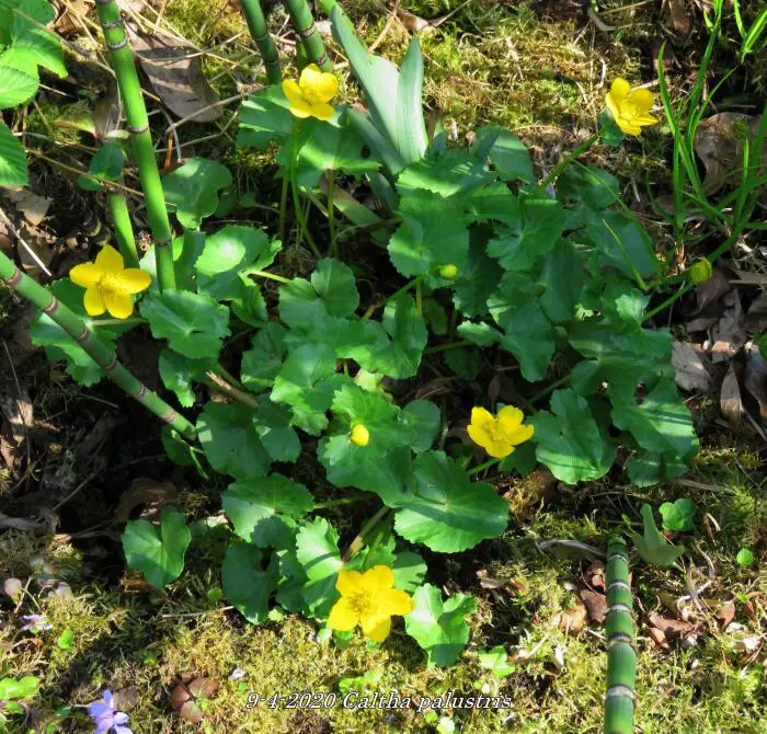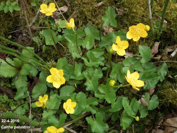 Men vind deze inheemse Caltha palustris vaak langs sloten, beken en vochtige weiden.