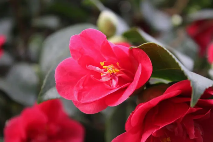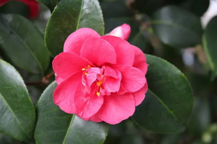 Een groenblijvende struik met glanzend leerachtig blad.