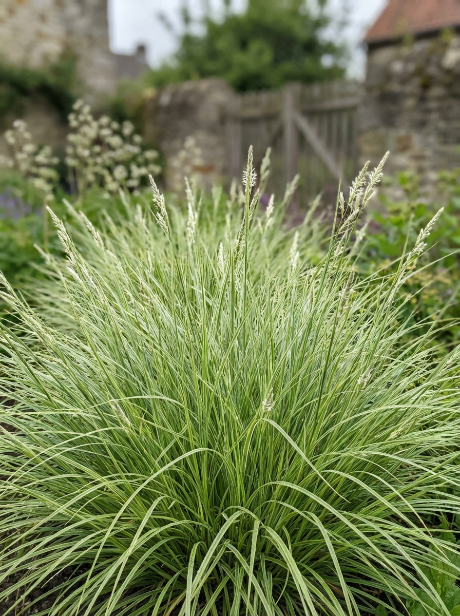 Bloeit met fijne witte aartjes op rechte stijve stengels.