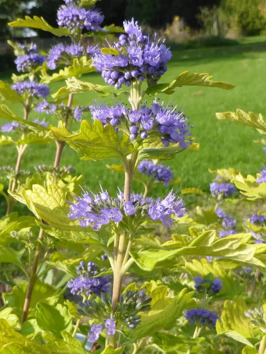 Caryopteris x clandonensis is een hybride ontstaan uit C.incana en C.mongholica en afkomstig uit Oost-Azië.