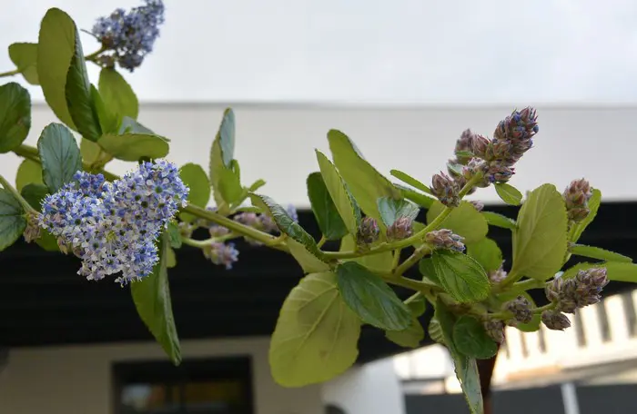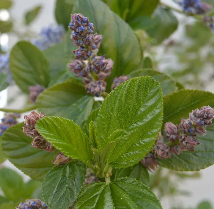 Ceanothus arboreus 'Trewithen Blue' afkomstig uit Californië (VS), bloeit echt prachtig en rijk met korenblauwe seringachtige bloemtrossen van 12cm lang. De bladeren zijn glanzend smaragdgroen en ovaal.