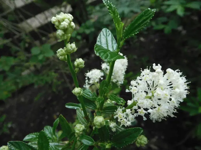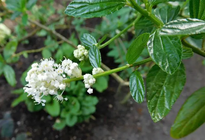 Ceanothus thyrsiflorus 'Millerton Point' is een bossige heester met kleine ovale, glanzende donkergroene blaadjes. Groenblijvend in zachte winters.