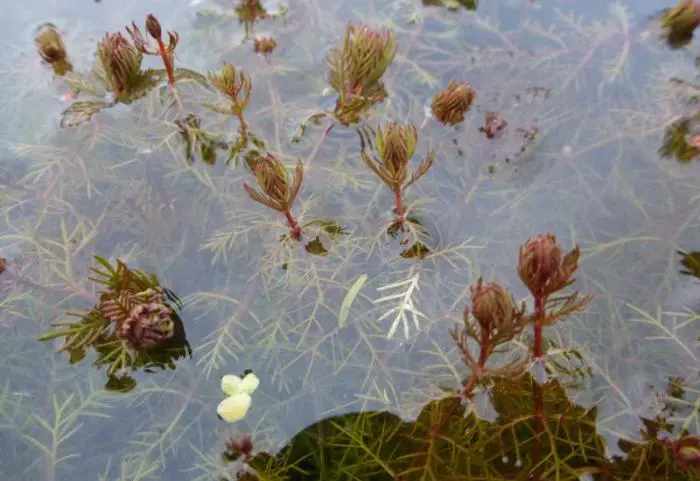 Lijkt erg op de fijn bladige Ceratophyllum submersum, maar is donkerder en grover van blad.