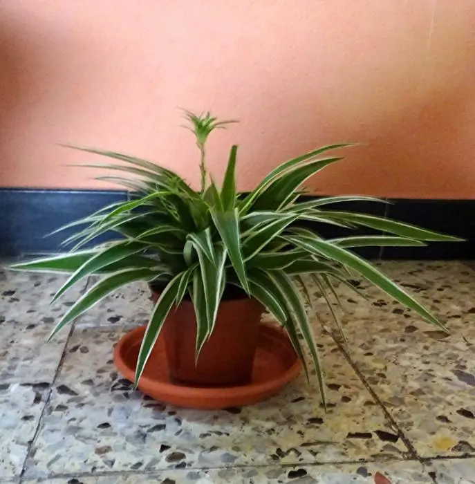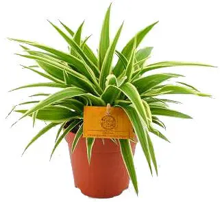 Chlorophytum comosum 'Ocean' is een mooie kamerplant die wel in de zomer buiten kan maar dan niet in de felle middagzon. Het blad wordt dan vaal.
