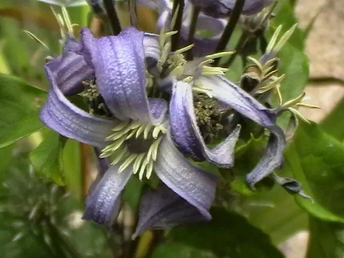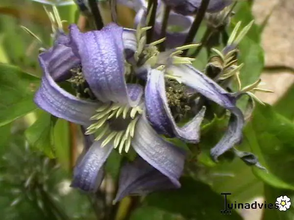 Clematis heracleifolia ‘Purple Princess’ is een niet-klimmende, rechtopstaande clematis met een vrij brede bossige groei en trossen van licht geurige, buisvormige bloemen.