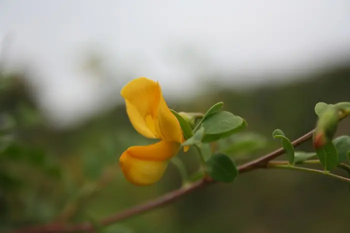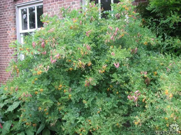 Een sierheester met geel-oranje bloemen die verschijnen vanaf eind mei tot september.