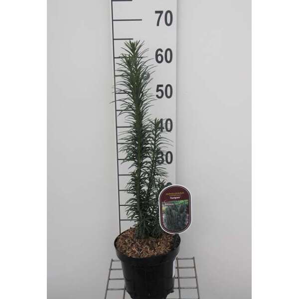 Cephalotaxus harringtonia 'Fastigiata' is een traaggroeiende zuilvormige conifeer met lange naalden.
