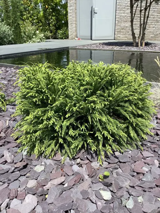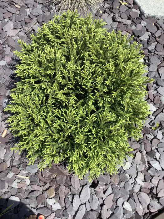 Cryptomeria japonica 'Globosa Nana' is een bolvormig geelgroen conifeer.