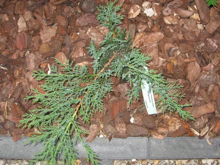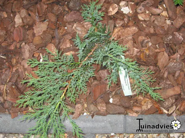 Juniperus sabina 'Rockery Gem' is een breedgroeiende lage conifeer dat goed als bodembedekker kan gebruikt worden.