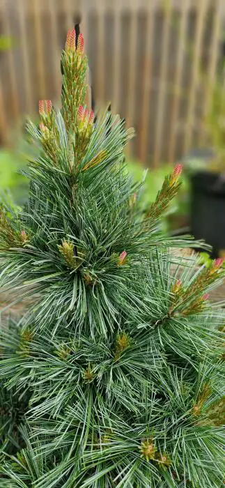 Pinus flexilis 'Pygmaea' is een traaggroeiende dwergconifeer met een smal opgaande groeiwijze en grijsblauwe naalden.
