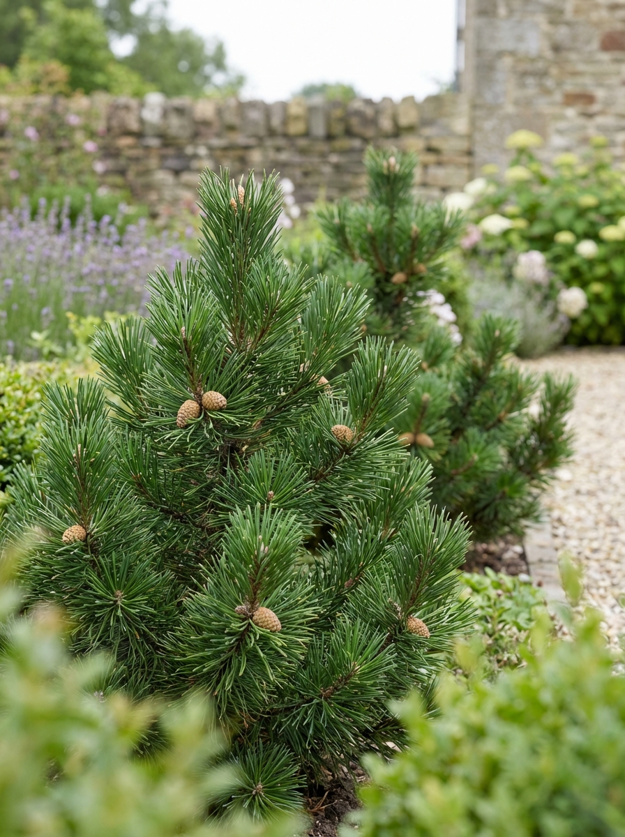Pinus heldreichii 'Malinki' is een compacte zuilvormige conifeer met rechtopgaande takken, dicht begroeid met donkergroene naalden.Krijgt al kegels op jonge leeftijd.Wordt na 10jaar +/- 150cm hoog.