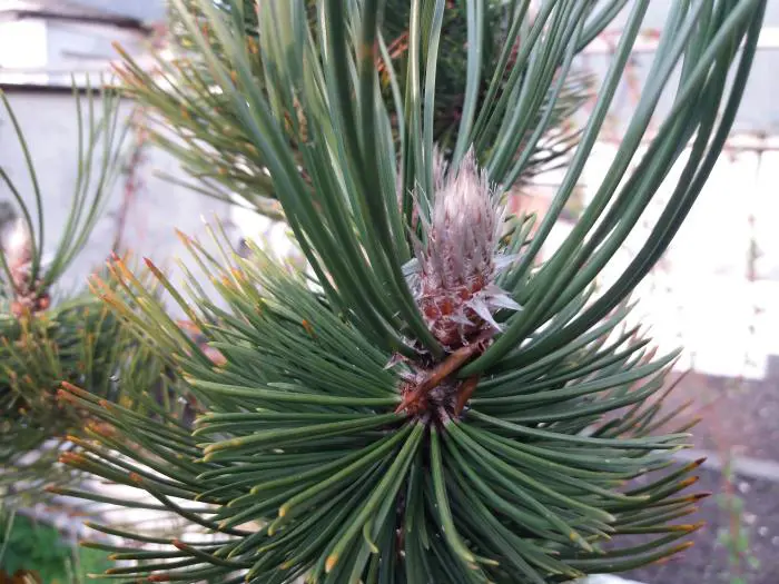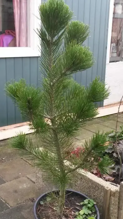 Pinus heldreichii 'Satellit' heeft een mooie opgaande konische vorm.
