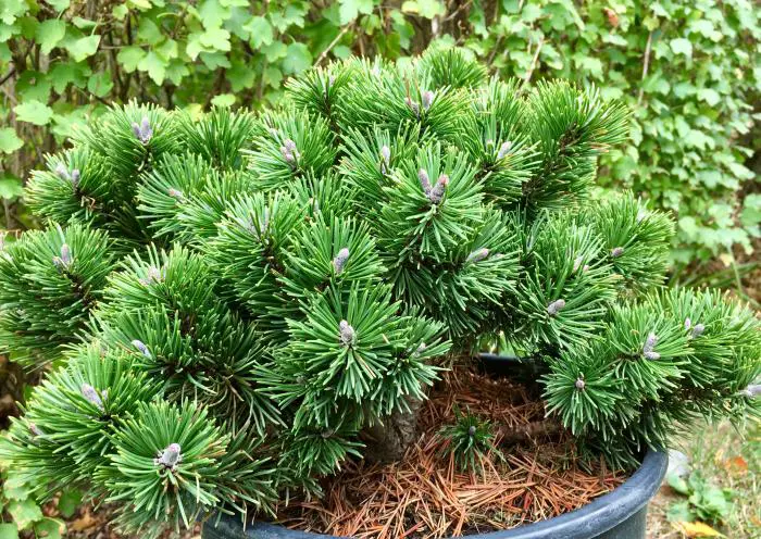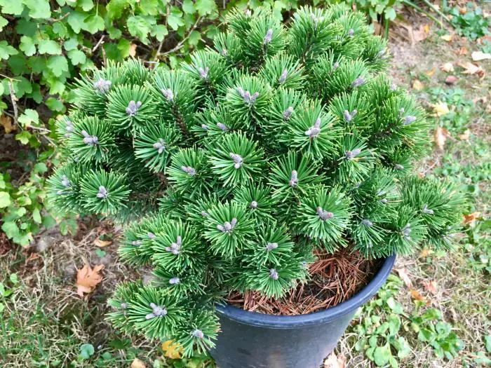 Pinus mugo 'Sherwood Compact' is een mooie bolvormige dwergden met matgroene naalden.