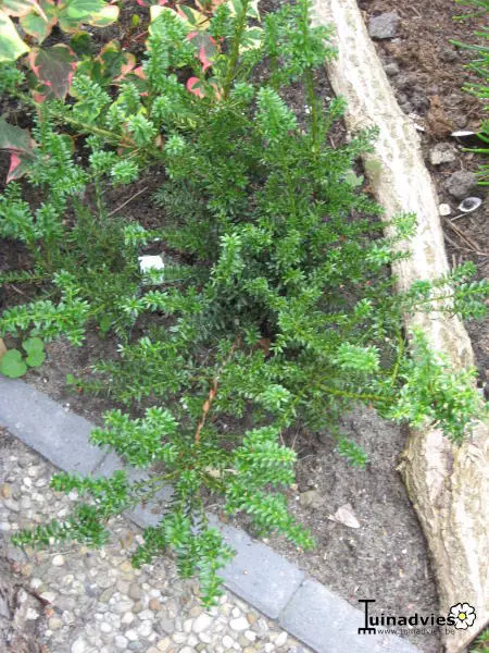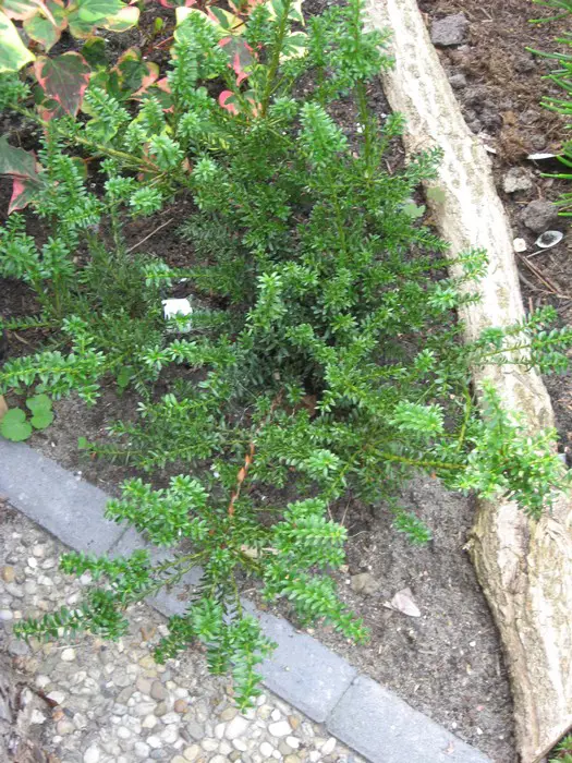 Podocarpus 'Chocolate Box' is een hybride ontstaan uit een kruising van Podocarpus alpinus en Podocarpus nivalis.