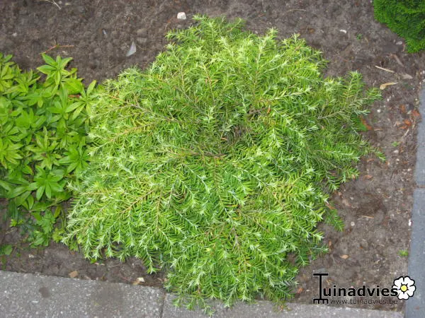 Tsuga canadensis 'Jeddeloh' is een breed en compact groeiend dwergconifeertje met een nestvormige groeiwijze.