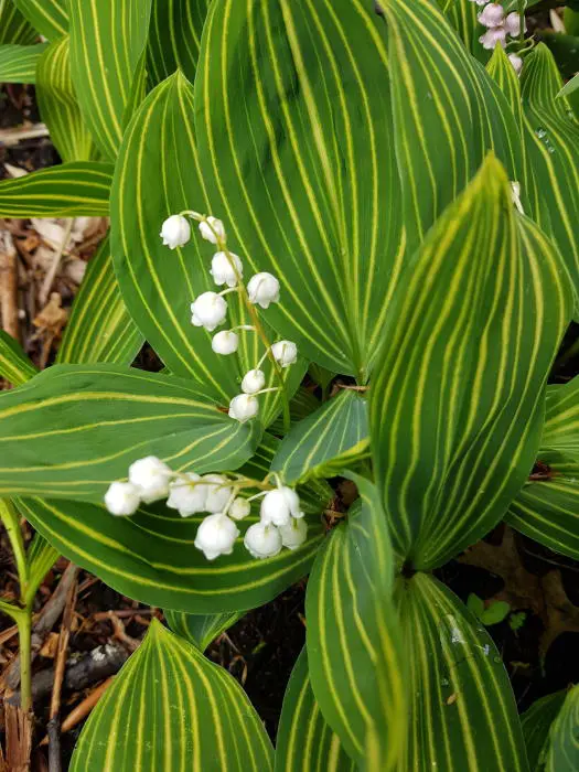 Ze worden soms verward met Convallaria majalis 'Albostriata' maar deze zijn te herkennen aan de witte strepen.