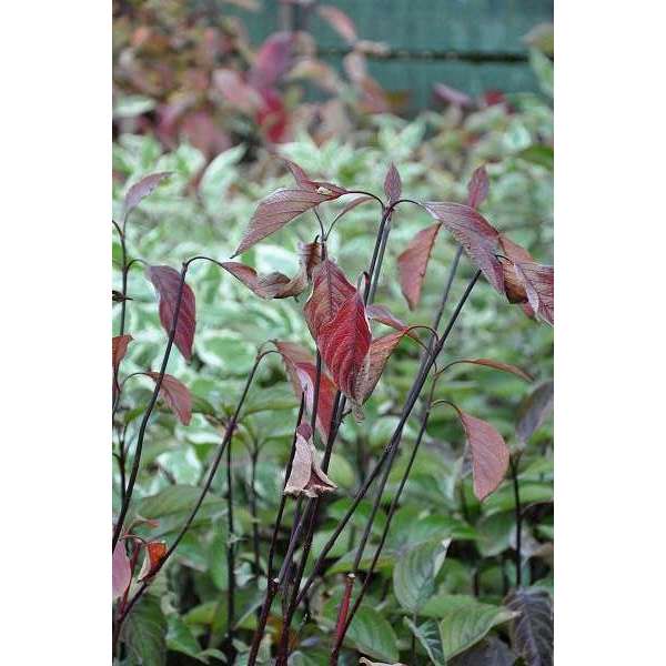 Het meest decoratieve aan de struik zijn de zwartpurperen kale takken in de herfst en winter.