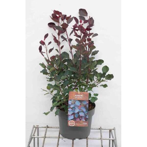 Het blad is ovaal met gerafelde randen, prachtig paarsrood verkleurend naar oranjerood in het najaar.
