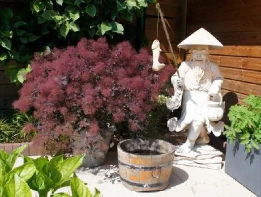 Cotinus coggygria 'Dusky Maiden' is een compact groeiende, goed vertakte bossige struik.