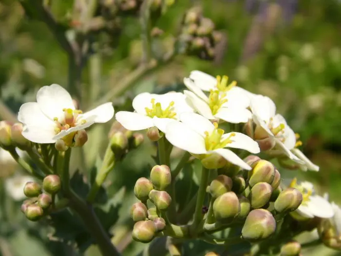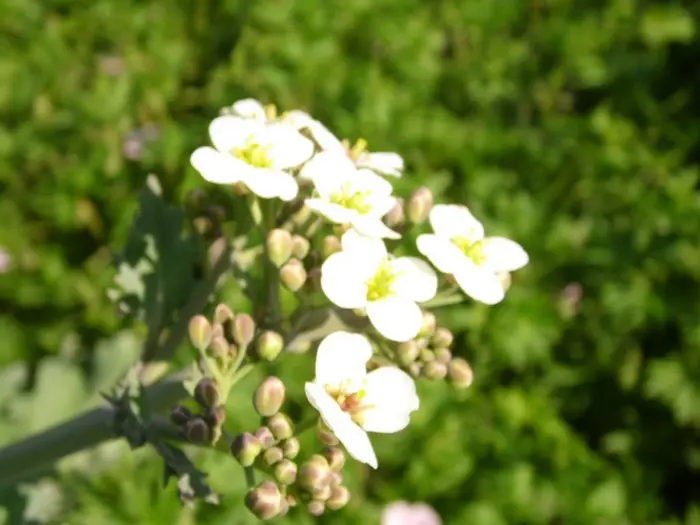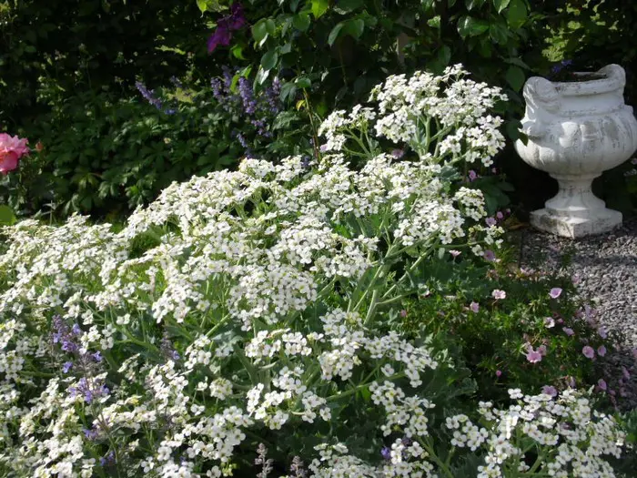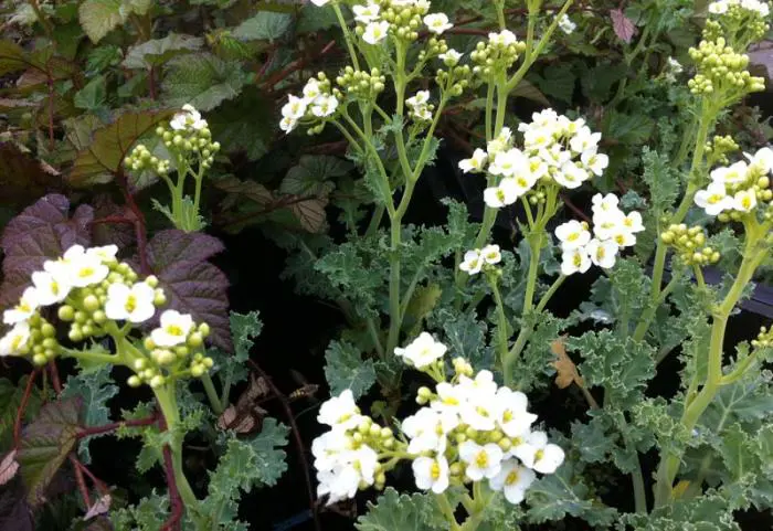 Er bestaat ook een soort met grijspurper blad en eveneens witte bloempjes.