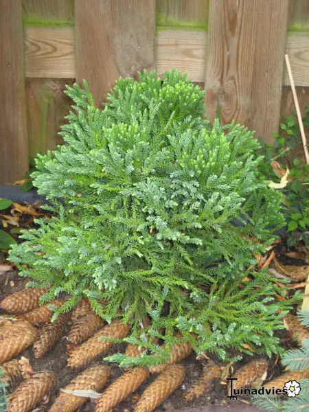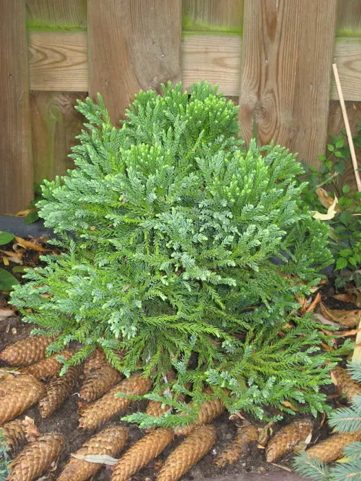Cryptomeria japonica ‘Little Diamond' heeft een compacte bolvormige groei.