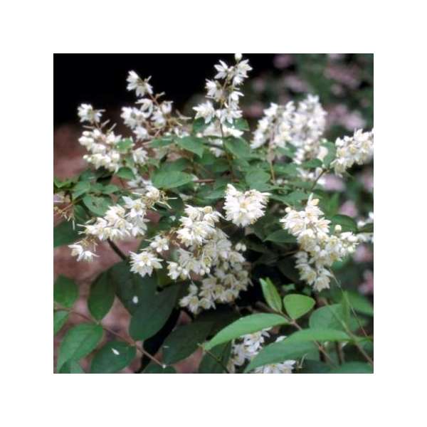 Deutzia scabra heeft een rechtopstaande groeiwijze , later met afhangende takken met donkergroene ruwe en behaarde bladeren.