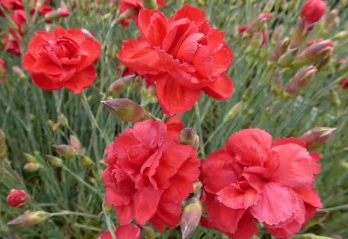 De bloemen zijn rood, gefranjerd en geuren heerlijk.
