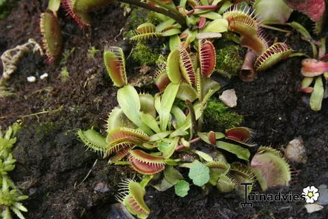 De bladeren bestaan uit 2 helften, produceren een zoete nectar die kleine insecten en spinnen lokt, vervolgens dichtklapt en de prooi verteerd door middel van enzymen.