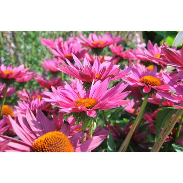 Echinacea purpurea 'JS Robin Hood' bloeit met grote paarse bloemen.