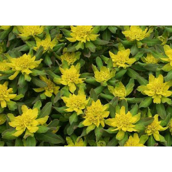 Euphorbia polychroma vormt een mooi rond bosje, spreidend en bossig met in het voorjaar chroomgele bloemen dat een blauwgroen en harig gebladerte bedekt.
