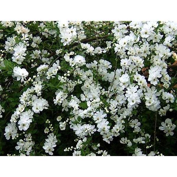 In het voorjaar zijn de takken overvloedig bedekt met halfgevulde sneeuwwitte bloemen.