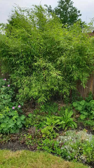 Fargesia 'Winter Joy' is een NIET-woekerende bamboe met donkere stengels en lichtgroen blad.