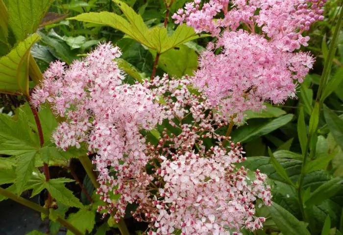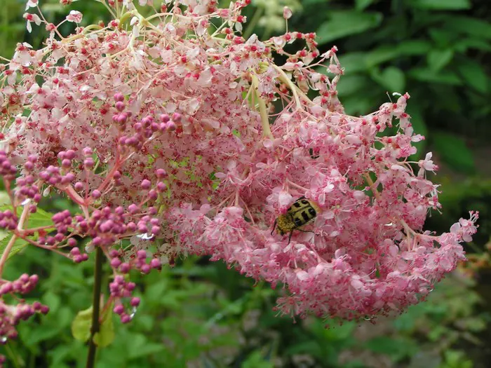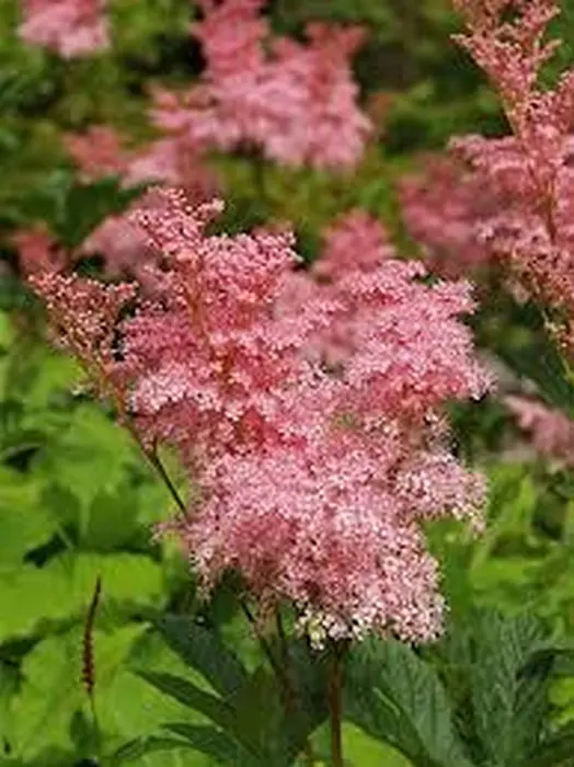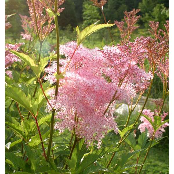 Bloeit met grote pluimen van kleine, intens frisroze bloempjes met lange uitstekende meeldraden en zijn ongevoelig voor de grillen van het weer.