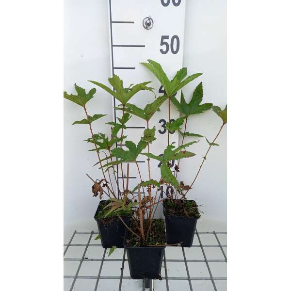 Het is een snelle groeier met in de lente opgerichte, vertakte paarsgetinte stengels met grote, onregelmatig gelobde, groene bladeren.