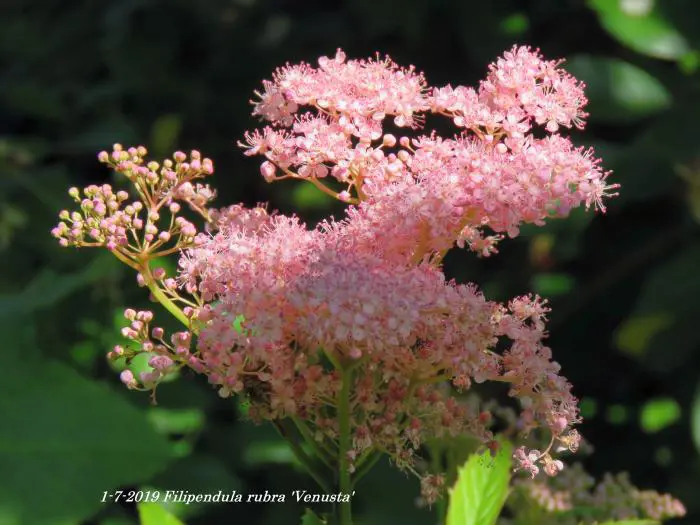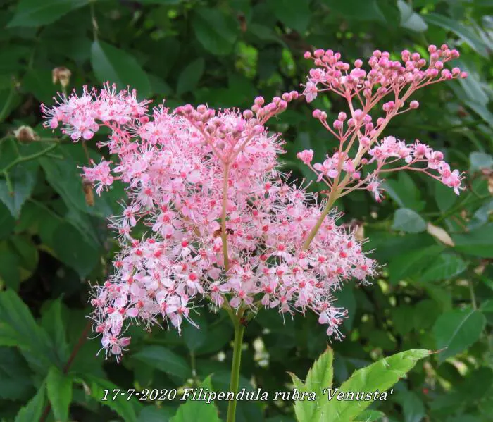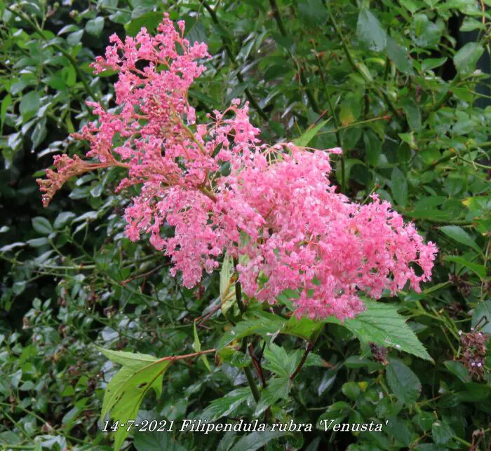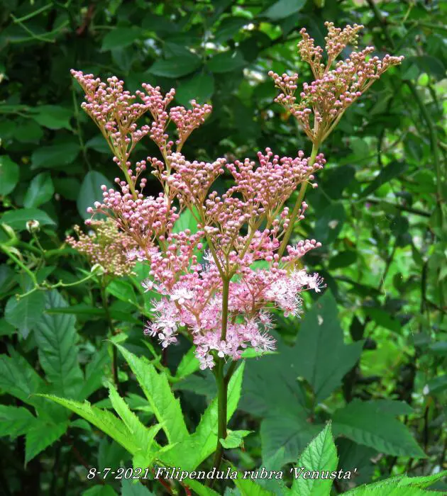 Filipendula rubra 'Venusta' is een weelderige meerjarige, wortelstoksoort, groeit oorspronkelijk in de natte weiden van de Verenigde Staten.